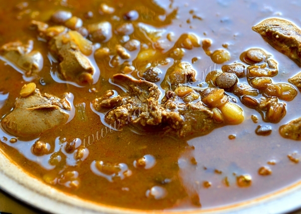 Подают такую похлёбку с лавашем. Я видела разные интерпретации чечевичной похлёбки. На мой вкус, самая удачная всё-таки не с печёнкой, а с бараниной.