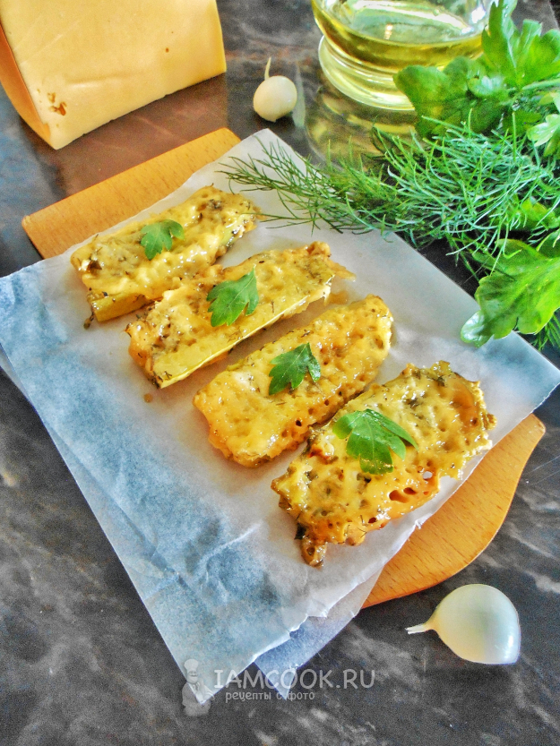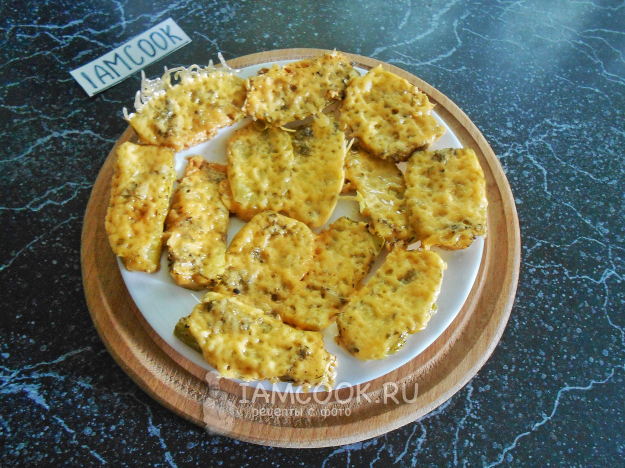 Горячие кабачки с сыром переложите на блюдо и подавайте к столу, слегка остудив. Эта закуска вкусна и в теплом, и в холодном виде.