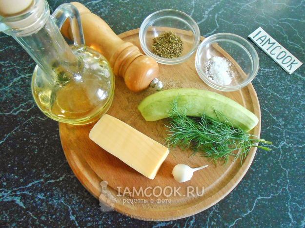 Подготовьте продукты по списку для запекания кабачков с сыром в мультиварке.