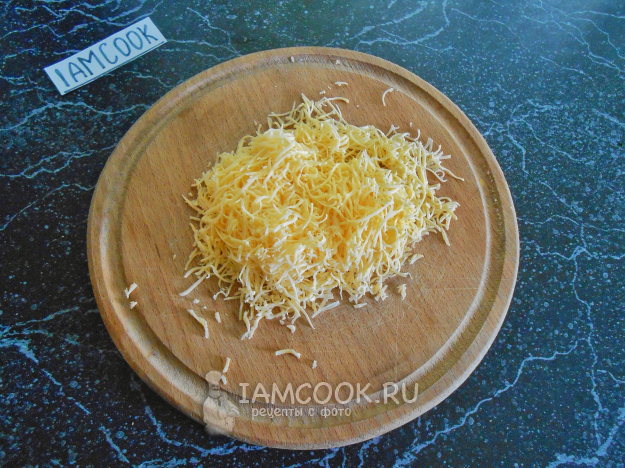 Твердый сыр натрите на средней терке. Я использую сыр гайсин, он очень вкусный и хорошо плавится.