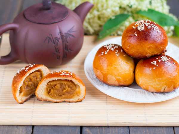 Отправить в теплое место на 40-50 минут. Подошедшие булочки смазать молоком и отправить в разогретую до 180°С духовку. Выпекать 20-25 минут.