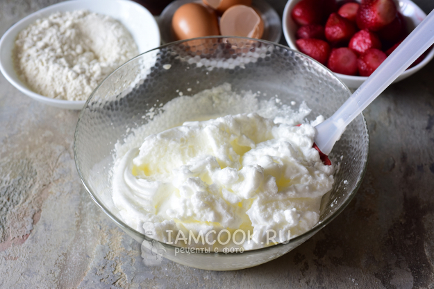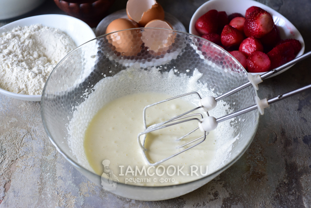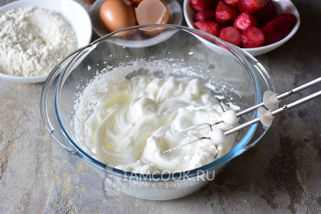 Миксером будем взбивать эти ингредиенты до побеления смеси.