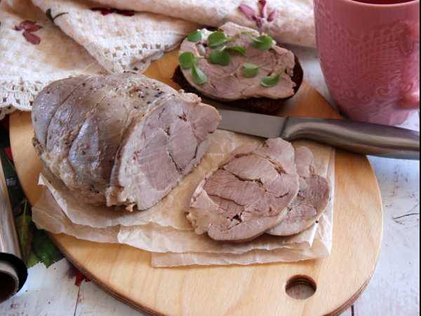 Перед подачей нарежьте отварной свиной язык на ломтики. Подавайте с хреном или горчицей.
