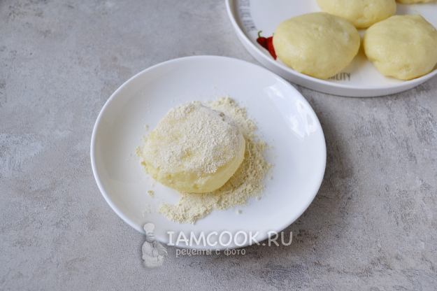 Обкатайте биточки с обеих сторон в кукурузной муке.