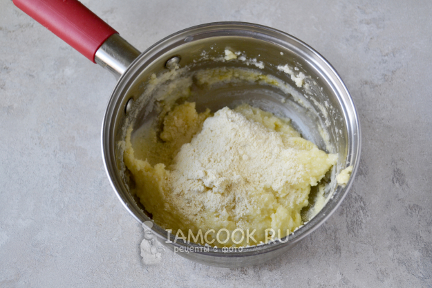 Сварите густую манную кашу в течение 6-8 минут. Снимите сотейник с огня и дайте каше полностью остыть.