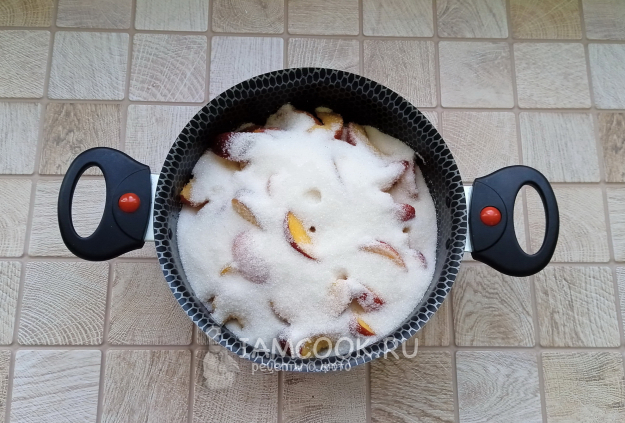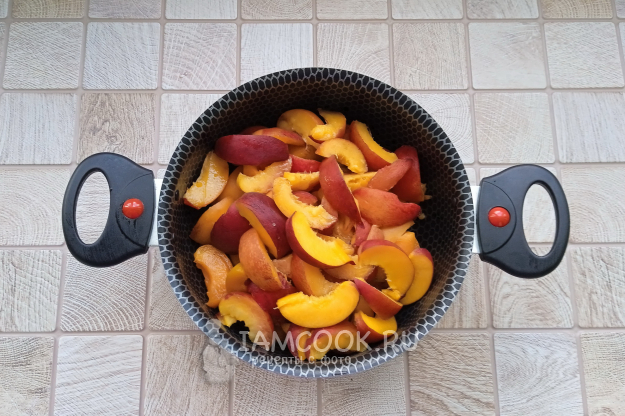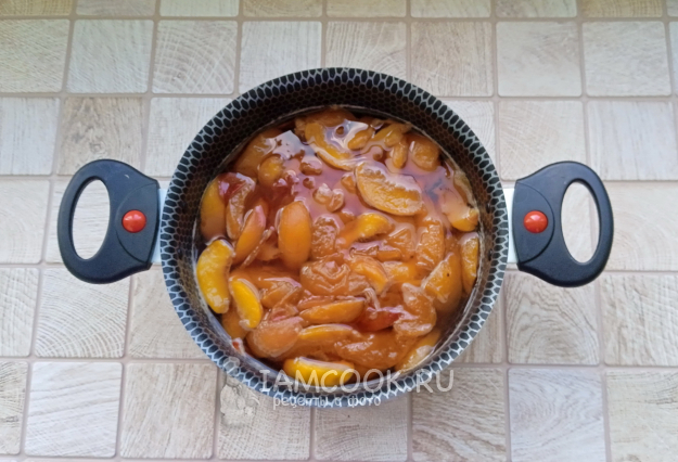 Точно так же поступите с персиками. Добавьте их к абрикосам.