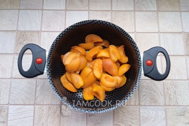 Абрикосы помойте, удалите косточки и нарежьте крупными дольками. Выложите в кастрюлю с антипригарным покрытием.