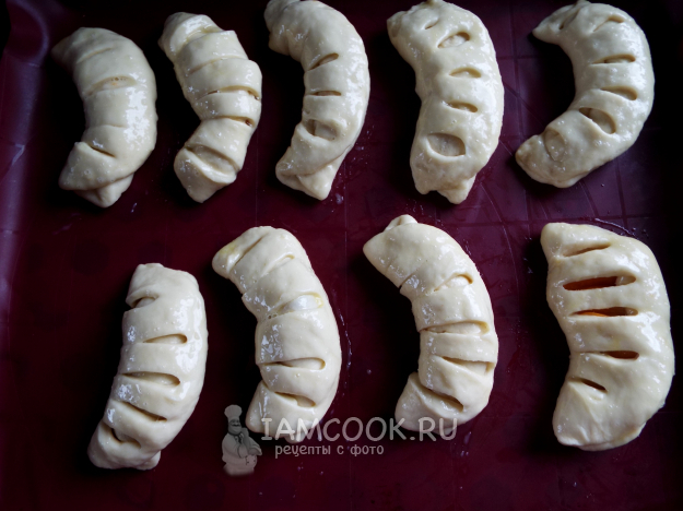 Булочки смазать взбитым яйцом. Выпекать до румяного цвета при 180 градусах, 15-20 минут.