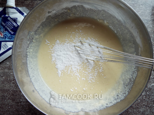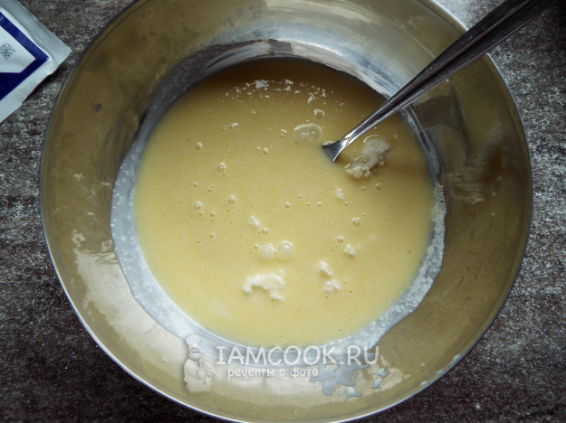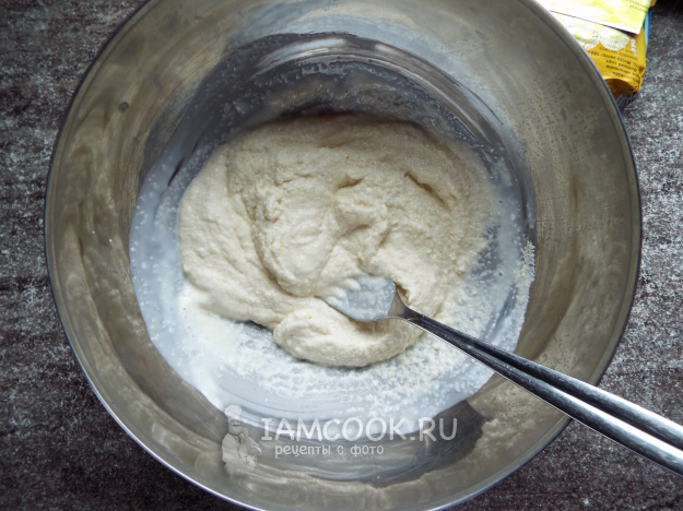 Перемешать, добавив разрыхлитель.