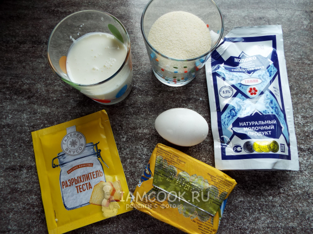 Возьмите необходимые ингредиенты для манника со сгущенкой.