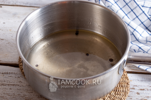 Для маринада воду доведите до кипения, добавьте сахар, соль, растительное масло, перец и уксус. Дождитесь растворения сахара и соли.
