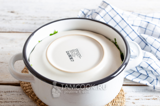 Прикройте крышкой, а сверху поставьте пресс, чтобы кабачки дали сок. Оставьте кабачки при комнатной температуре на сутки.