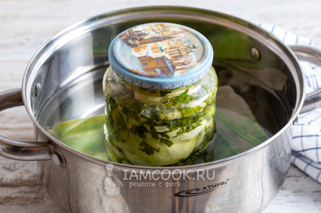 Затем банки закрутите крышками, переверните вверх дном и укутайте до полного остывания. Салат «Хризантема» из кабачков на зиму готов - можно убирать на хранение.