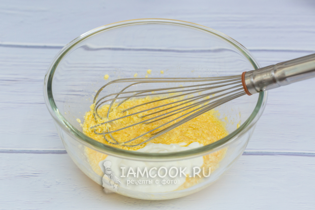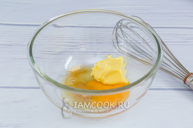 Смешайте яйцо, соль, ванилин, сахар и масло.