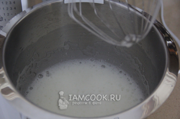 Добавить крахмал и перемешать белковую массу на низких оборотах.