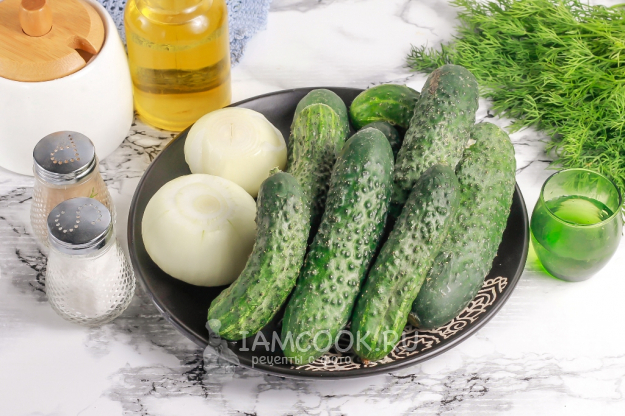 Подготовьте необходимые ингредиенты для создания салата «Гулливер» из огурцов на зиму.