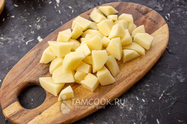 Очистите картофель, промойте его, нарежьте крупным кубиком.