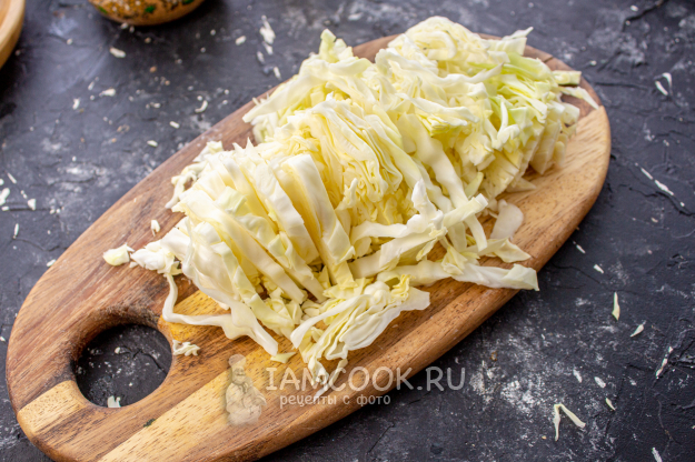 Белокочанную капусту нашинкуйте тонкими полосками.
