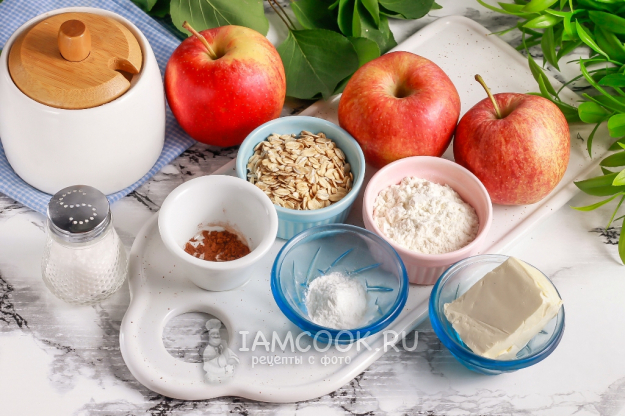Продукты для приготовления яблочного крамбла в микроволновке - перед вами.