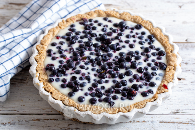 Выложите на тесто ягоды и залейте сметанной заливкой (или наоборот, сначала - заливку, сверху - ягоды).