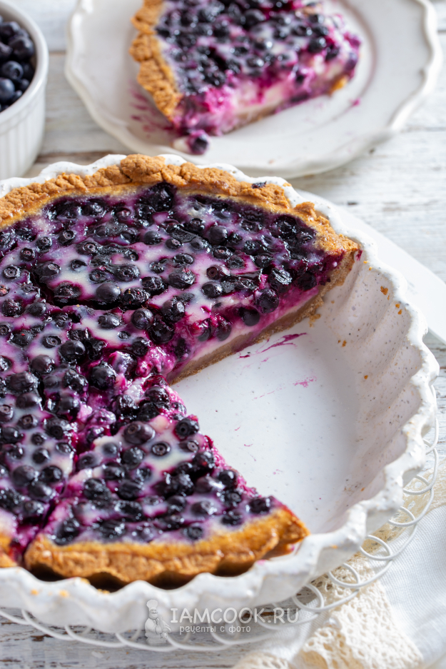Готовый финский черничный пирог со сметанной заливкой достаньте из духовки и перед нарезкой дайте обязательно ему полностью остыть.