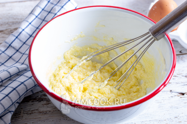 В глубокой миске смешайте сливочное масло, яйцо и сахар.