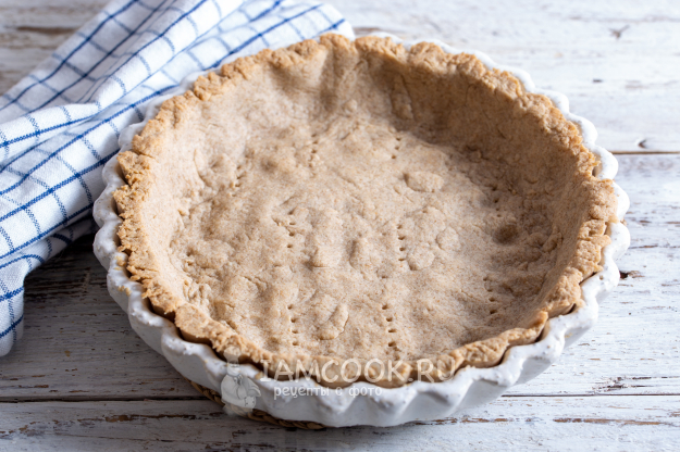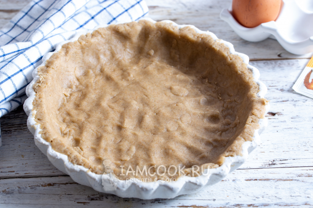 В выбранную форму выложите тесто и руками распределите его по дну и краям, сделав бортики. Излишки срежьте ножом.