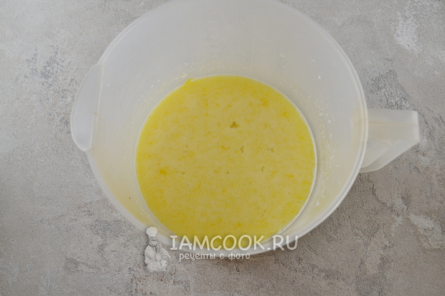В миску влейте молоко, растительное масло, разбейте яйцо и всыпьте сахар.
