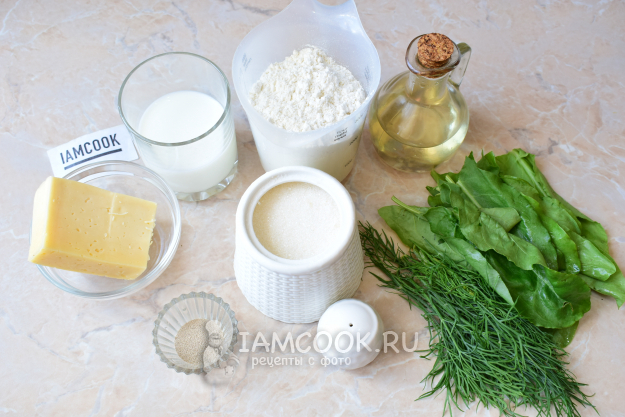 Продукты для осетинского пирога с щавелем и сыром подготовьте по списку ингредиентов. Муку просейте пару раз через сито. Щавель для пирога берите свежий. Тщательно его промойте от загрязнений. Сыр выбирайте на свой вкус, главное, чтобы он хорошо плавился.