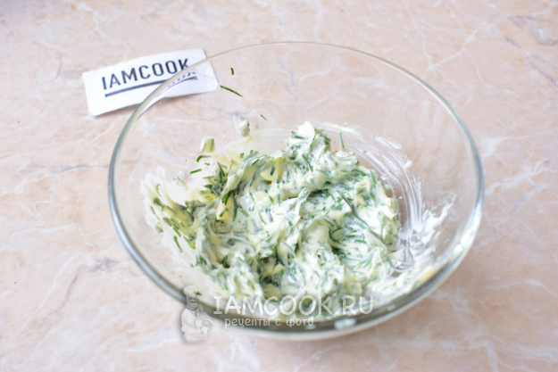 Для начинки смешайте мягкое сливочное масло и измельченный укроп.
