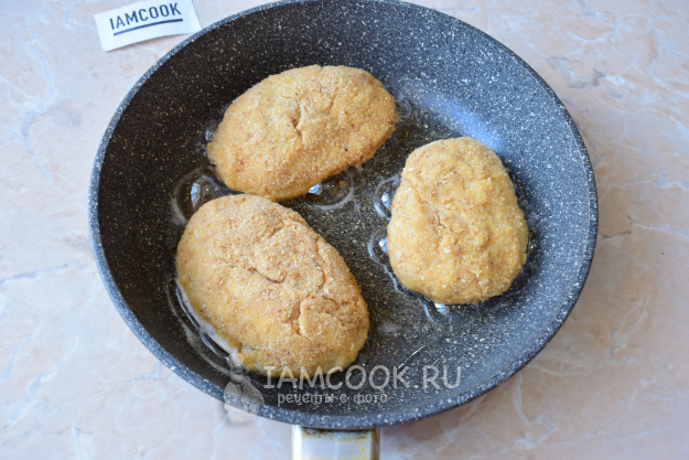 Выложите котлеты в горячее масло и обжаривайте на небольшом огне по 2-3 минуты с каждой стороны.