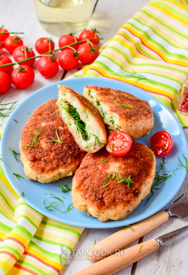 При подаче на стол рыбные котлеты по-киевски можно дополнить любым гарниром.