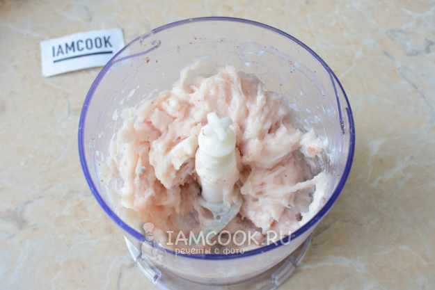 Филе рыбы измельчите любым удобным способом. Можно пропустить через мясорубку или воспользоваться измельчителем.