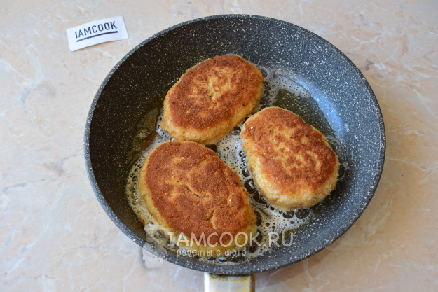 Котлеты должны успеть прожариться внутри. Поэтому не спешите увеличивать огонь. Готовые котлеты подрумянятся. Снимите их со сковороды.