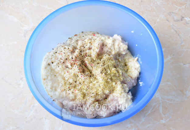 Всё смешайте в чаше. По вкусу добавьте соль и специи для рыбы.