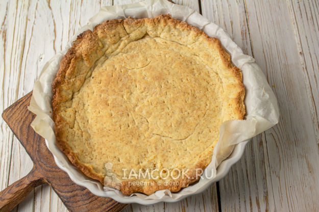 Снимаем груз вместе с пергаментом и допекаем основу еще 10-15 минут при той же температуре. Оставьте основу в форме и дайте ей остыть.