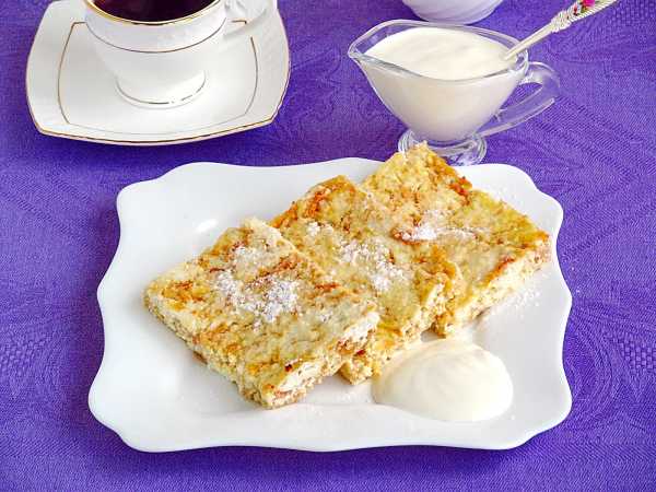 Творожная запеканка с яблоками без манки и муки готова! Великолепный завтрак для всей семьи.