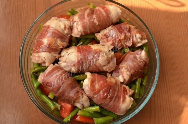 Я часто готовлю разнообразные блюда из курицы. Куриное мясо достаточно диетическое, доступное, из него можно быстро и вкусно приготовить массу блюд. Очень эффектно на столе смотрятся куриные рулеты, их можно приготовить как в будний день, так и к праздничному столу. Предлагаю приготовить вкусное блюдо из куриных бедер с сыровяленой ветчиной и гарниром из стручковой фасоли и помидоров. Это блюдо обязательно приятно удивит ваших близких.