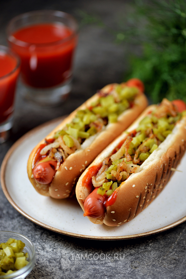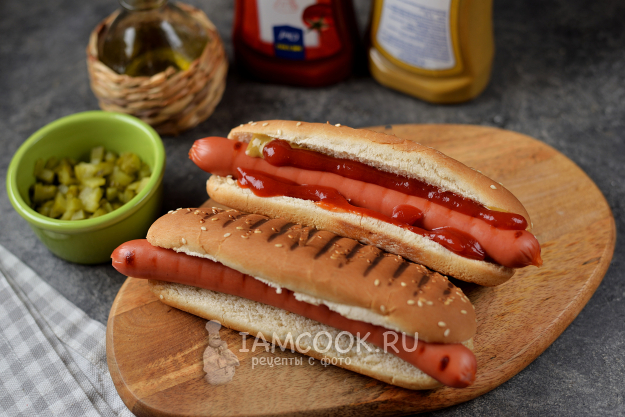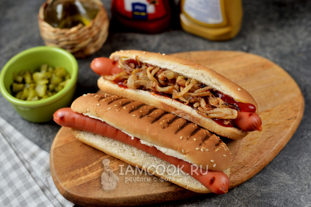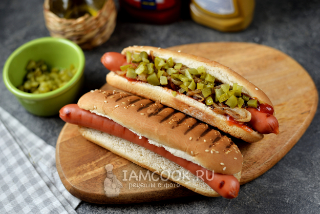 Американский хот-дог готов! Подавайте немедленно, сразу же после приготовления.