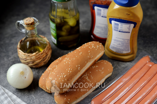 Для приготовления классических американских хот-догов вам понадобятся продукты на фото (подробнее - в списке ингредиентов).