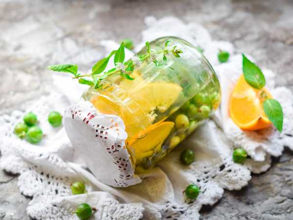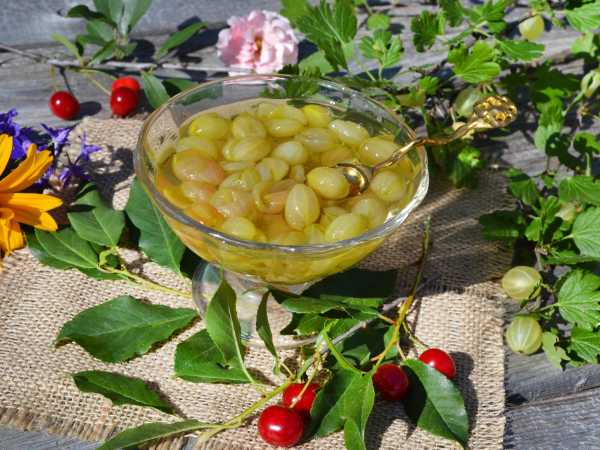Подготовьте необходимые ингредиенты для заготовки компота из клубники и крыжовника на зиму.