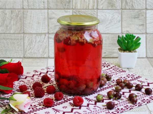 Компот из клубники и крыжовника на зиму готов. Перенесите компот в кладовую до холодов.