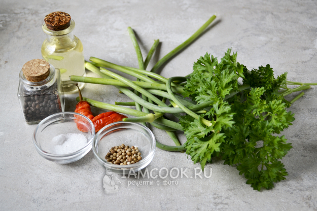 Продукты для приготовления аджики из чесночных стрелок на зиму - перед вами. Можете взять специи, которые вам по вкусу. Мне очень понравилось сочетание стрелок и кориандра.