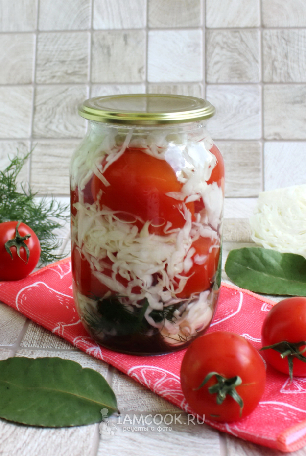 Когда вода закипит, залейте её в банку и закатайте крышкой. Переверните банку вверх дном и закутайте в одеяло на сутки. Храните в кладовке, в которой нет отопления. Таким способом я консервирую огурцы, помидоры, перец, кабачки уже много лет. И еще ни разу ни одна банка не «взорвалась». Маринованная капуста с помидорами на зиму готова. Получается замечательная капуста и вкусные помидоры.