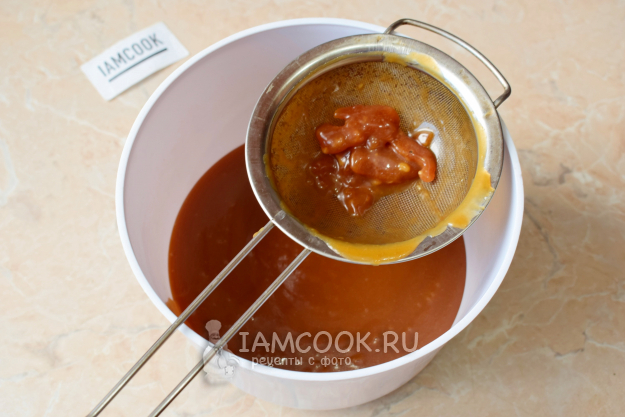 Для надежности процедите карамель через ситечко. Некоторая часть сахара все равно остается.
