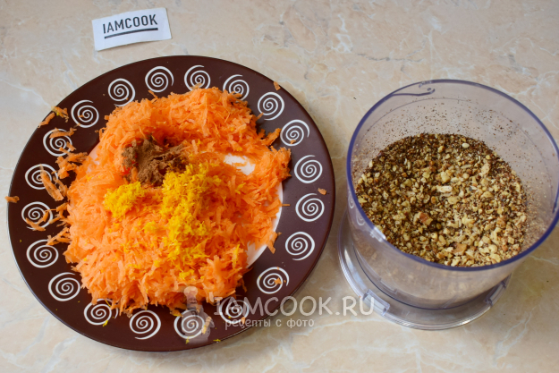 Морковь очистите и натрите на мелкой или средней терке. С апельсина снимите цедру.