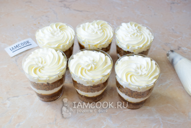Затем все слои еще раз повторите до полного стаканчика. Порционные морковные трайфлы с карамелью готовы! Поставьте их в холодильник на несколько часов, чтобы они пропитались и настоялись.