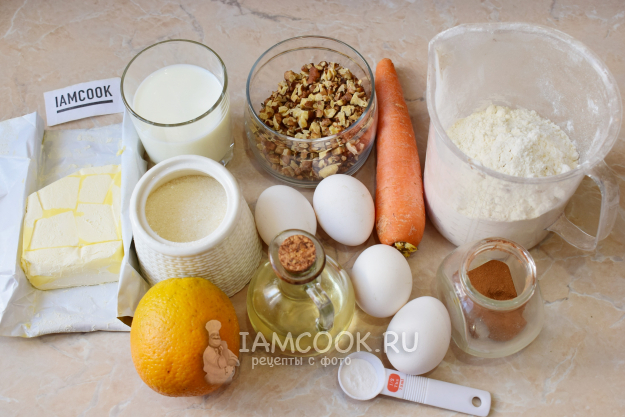 Соберите ингредиенты для приготовления морковных трайфлов с карамелью. Орехи можно и не добавлять. Но с ними гораздо вкуснее!