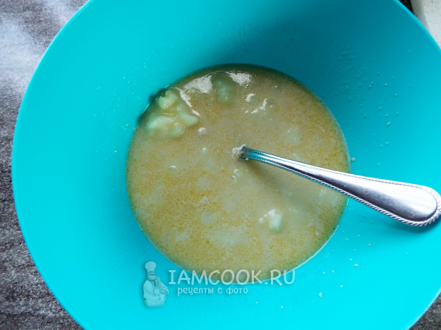Помесить и выложить в смазанную форму (круглую, квадратную - без разницы).