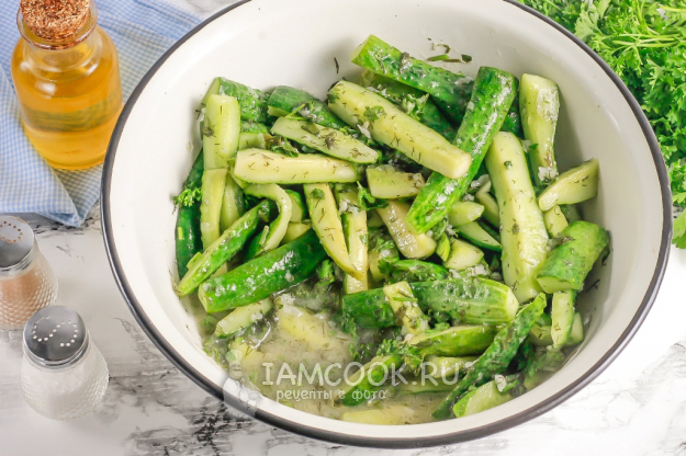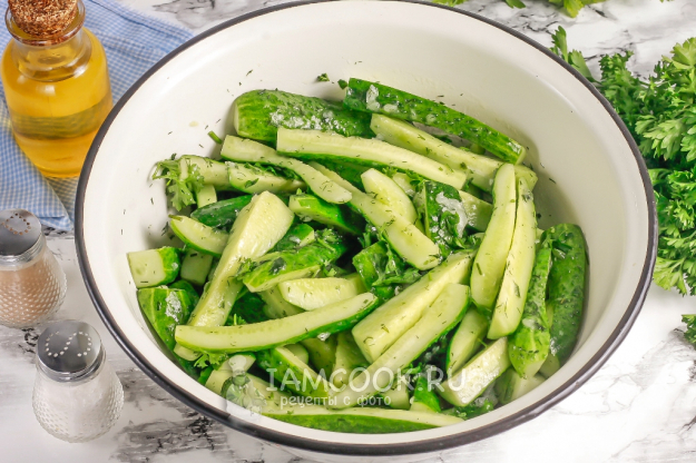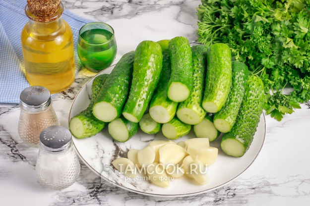 Ингредиенты для приготовления салата «Дамские пальчики» из огурцов на зиму - перед вами.